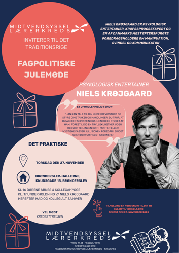 Niels Krøjgaard er psykologisk entertainer, kropssprogsekspert og en af Danmarks mest efterspurgte foredragsholdere om manipuation, svindel og kommunikaton - og han kommer til årets julemøde