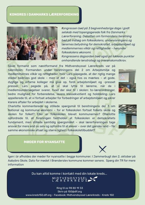 Medlemsbrev om fritvalgstillæg, budgetforlig i kommunerne og kongres i Danmarks Lærerforening
